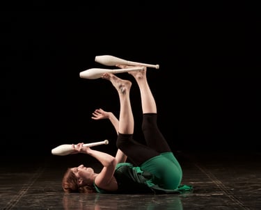 "Take Wing" is a lively juggling act showing finest club juggling and manipulation set into a swaying and playful choreography.