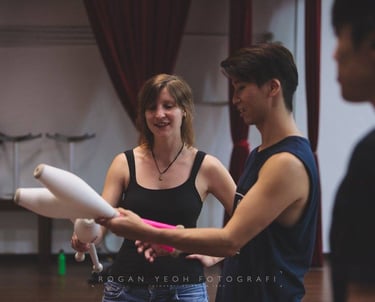 Anni has been teaching juggling for over 15 years - spreading the joy of object manipulation to novices as well as professionals to level up their juggling technique, broaden and solidify their artistic research, and refine their stage performance.